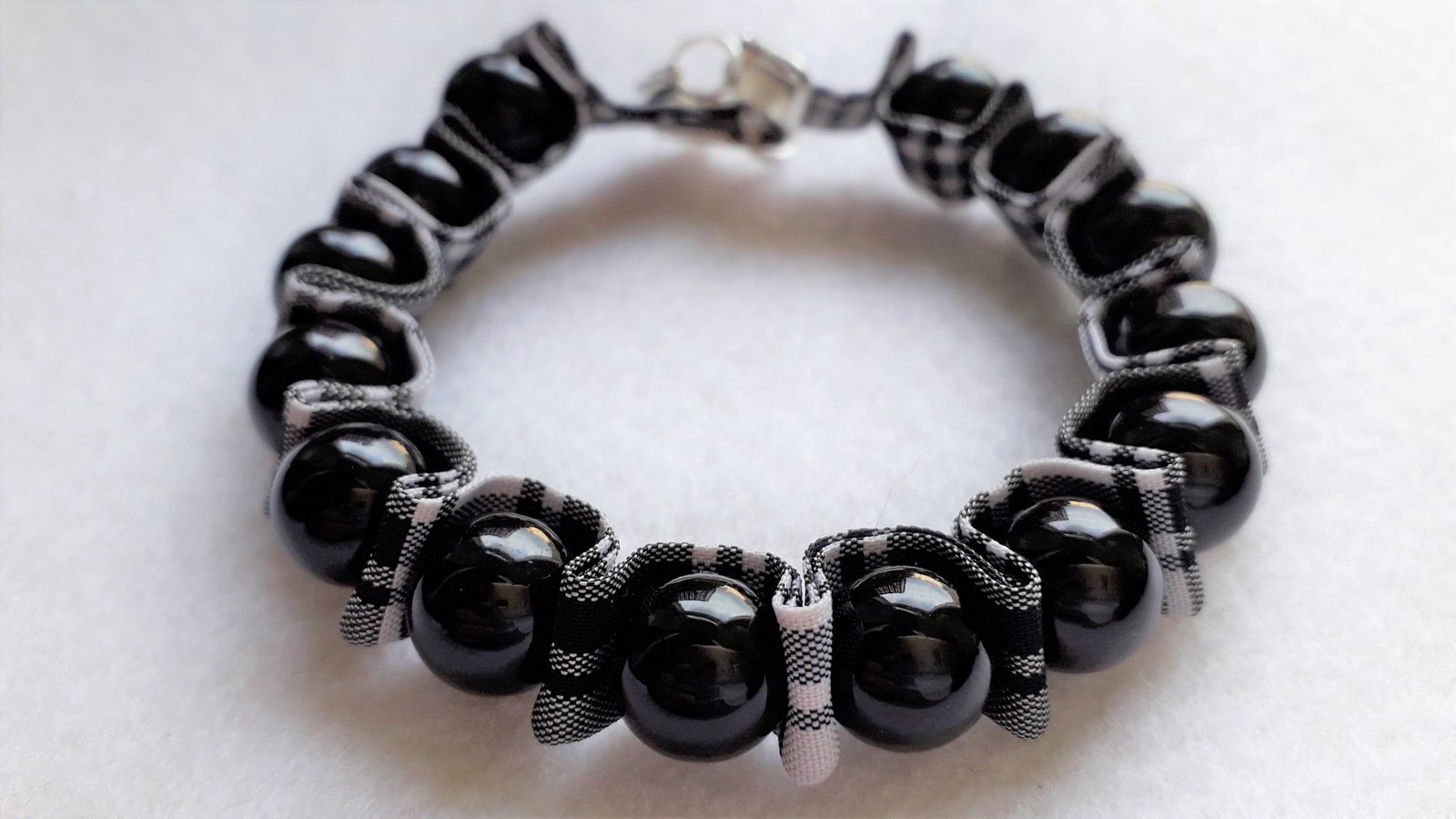 Tartan and Bead Necklace and Bracelet Set.